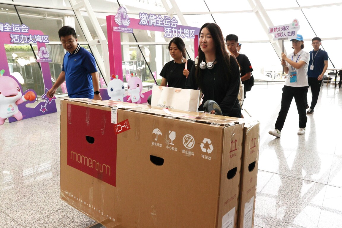 “志愿者‘情绪价值’给得特别到位,我们心里边挺温暖的。”6月28日,深圳宝安国际机场,刚刚抵达的河北代表团自行车运动员张丽娜笑容满面地说:“志愿者专门为我们举着引导牌,还有欢迎标语、专门的行李标贴,氛围特别好。”