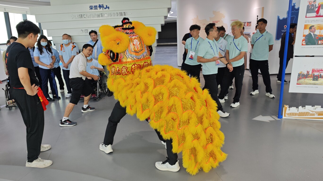 除了足球互动,香港队还解锁了佛山的“功夫副本”。在醒狮和咏春师父的带领下,运动员们认真学习一招一式,现场气氛热烈。聋人足球运动员陈冠升在体验咏春时,眼神专注,跟着师父反复练习收拳。他用手语比划,“佛山功夫很有名,这次也算体验到了。”