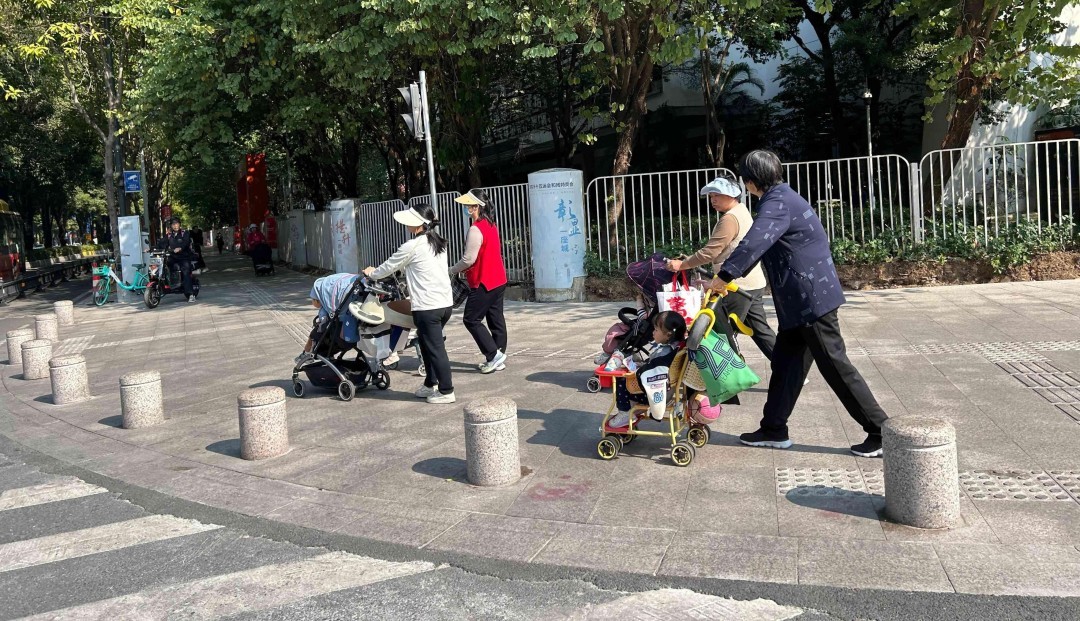 天河体育中心通过多杆合一整治、小型市政设施有序并入路侧设施带、规范非机动车停放区域等精致修补措施,优化慢行空间,保证通行空间顺畅无阻;在街角设计与实施上精雕细琢,减少车辆转弯半径,为每个街角平均增加约200平方米过街等候空间,实现安全有序的过街区域。