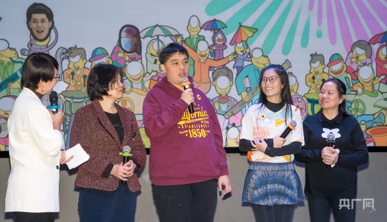 主创代表女孩卓君、男孩一哲及两位妈妈上台进行分享(央广网发 主办方供图)