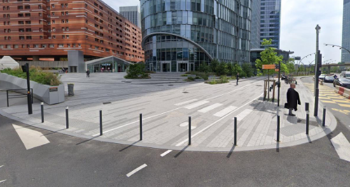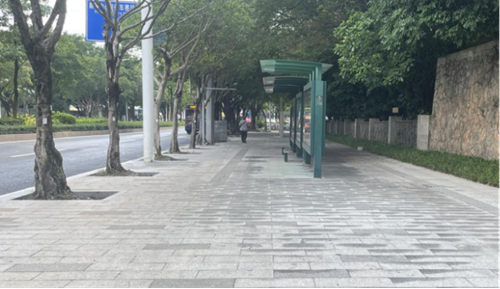 4.场馆主出入口各街角改造成全宽式缘石坡道,平均增加约200平方米过街等候空间,消除无障碍坡道与路面接壤处的高差,严格控制路面坡度在3%以内,实现零高差过街。