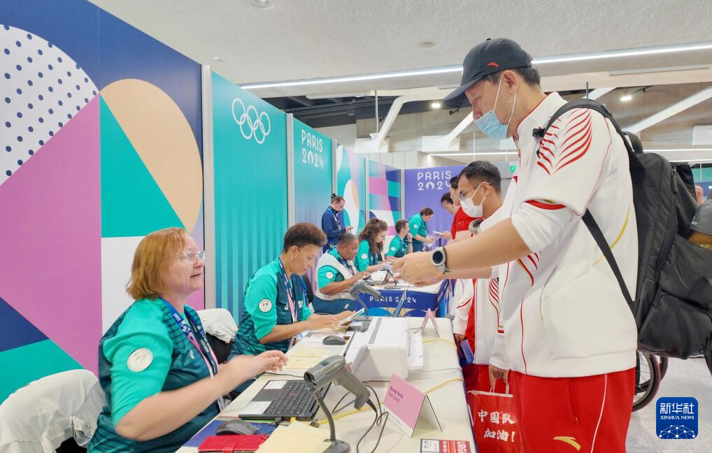 8月21日,中国体育代表团成员抵达机场后激活证件。当日,巴黎残奥会中国体育代表团抵达法国巴黎戴高乐机场。新华社记者 才扬 摄