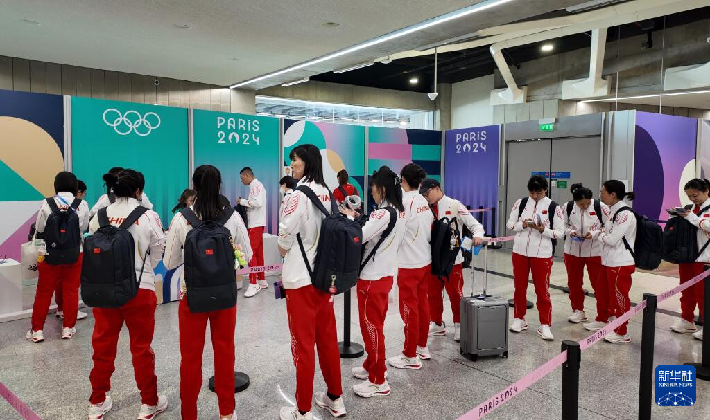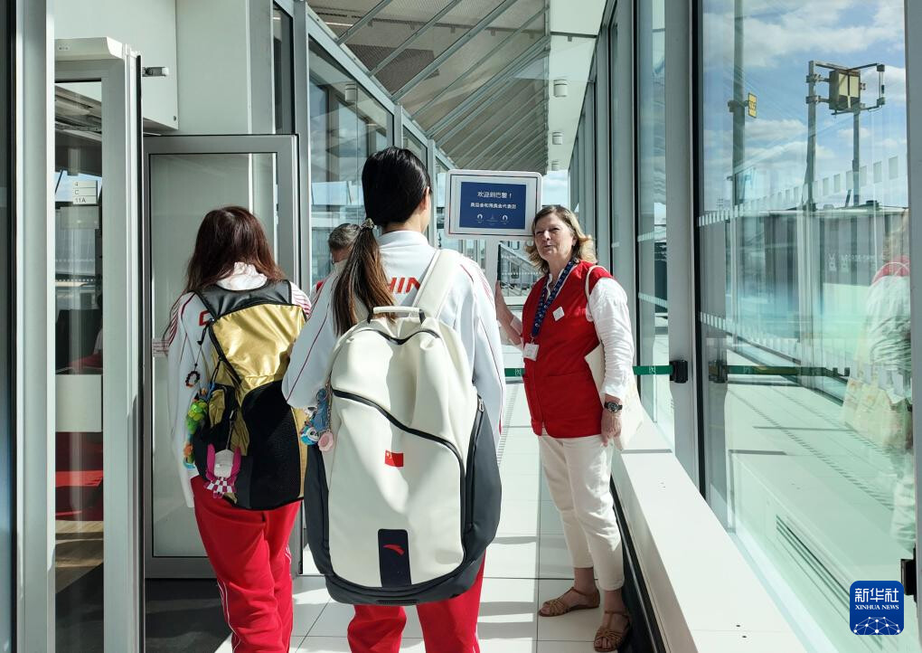 8月21日,中国体育代表团成员抵达机场后。当日,巴黎残奥会中国体育代表团抵达法国巴黎戴高乐机场。新华社记者 才扬 摄