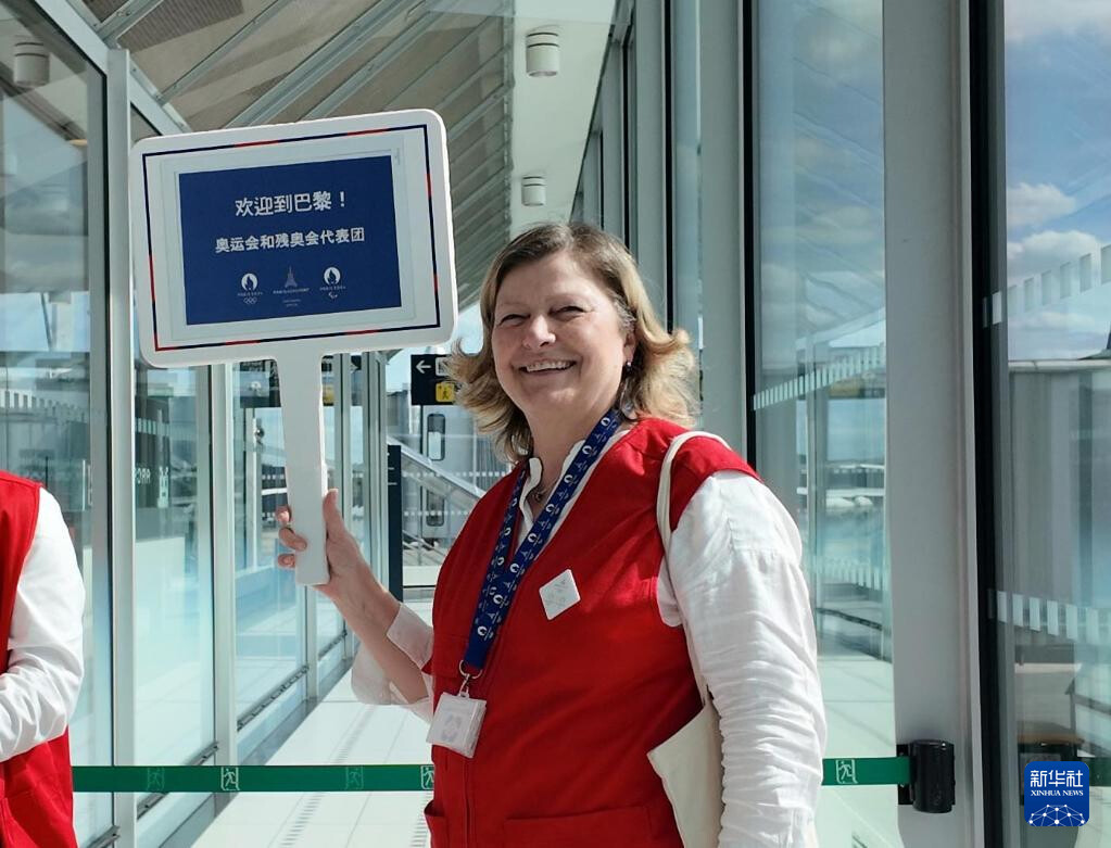 8月21日,工作人员在机场引导中国体育代表团成员。当日,巴黎残奥会中国体育代表团抵达法国巴黎戴高乐机场。新华社记者 才扬 摄