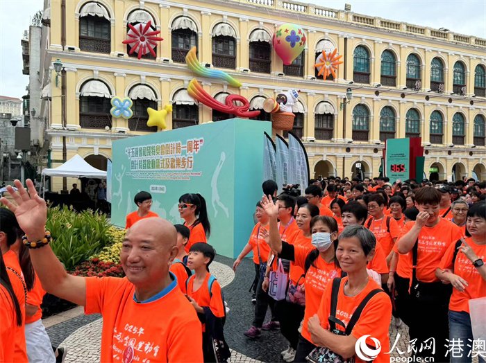启动仪式后,数百名澳门运动员及澳门赛区志愿者等参与欢乐步行活动。路线穿行澳门市中心繁华地段,参与者在轻松愉快的氛围中,感受运动会及澳门城市活力。此次活动让市民和旅客在参观澳门世遗景点的同时,感受澳门迎接及筹备运动会的浓厚氛围,提升市民和旅客的关注度及参与度,一同期盼十五运会和残特奥会的举行。