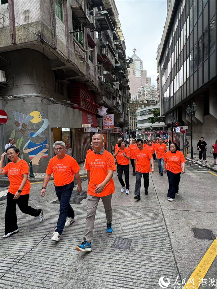 图为健步走在最前列的澳门赛区筹备办公室主任潘永权(左二)等。人民网记者 富子梅摄