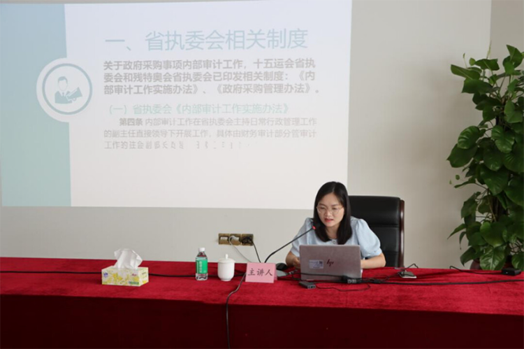 为提升十五运会和残特奥会广东赛区执委会(以下简称省执委会)政府采购工作的规范化、专业化水平,7月10日上午,省执委会财务审计部举办了十五运会和残特奥会省执委会政府采购业务培训班。本次培训由省执委会财务审计部何帆驻会副部长主持,邀请原广州市财政局法规税政处宋国宝处长和省审计厅驻会人员财务审计部审计处副处长黄建妹同志授课,培训班以“提升政府采购业务水平,防范化解采购风险”为主题,培训内容主要包括政府采购政策法规解读、采购流程介绍、采购审计风险防控等。十五运会和残特奥会省执委会驻会人员、采购代理机构代表等200多人参加了培训。