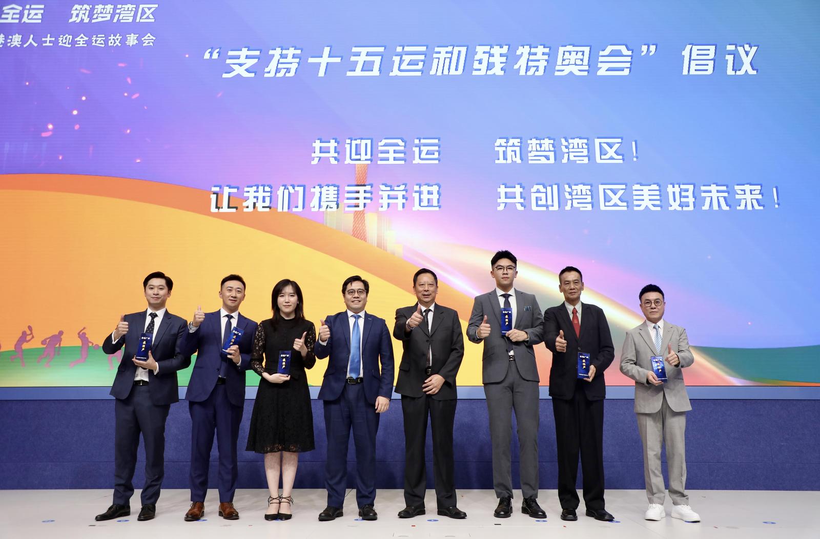 主题分享环节后,六位分享嘉宾在台上宣读“支持十五运会和残特奥会”的联名倡议书,呼吁社会各界人士共同参与、助力全运,为粤港澳大湾区的高质量发展贡献力量。活动最后,旷昌平和庄港生为嘉宾颁发了“全运最强声”纪念奖杯。全运会不仅是一场体育的盛会,更是一次三地人文的交流与融合,期待通过十五运会,穗港澳三地人民进一步增进了解、加深友谊,共同谱写大湾区美好未来。
