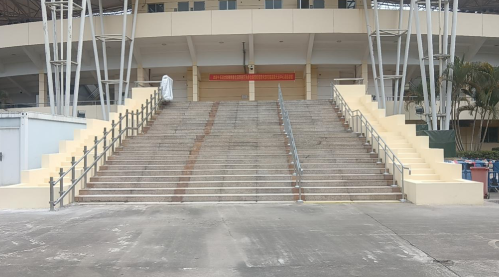 对此,深圳市龙岗区文化广电旅游体育局多次邀请市、区残联,会同代建单位、设计单位现场踏勘,借鉴相关案例,研究提出了架设升降平台的方案,考虑利用原建筑基础条件,量身打造无障碍“升降平台”。随后立即联系厂家,复核尺寸及型号,深化实施方案,最终确定建设0.9m*1.1m大小的升降平台,涉及两个坡段,全长共计28.8米。从确定方案到量尺制作再到安装完成仅用时15天,充分展现了整个赛事场馆改造团队的高质、高效作风。