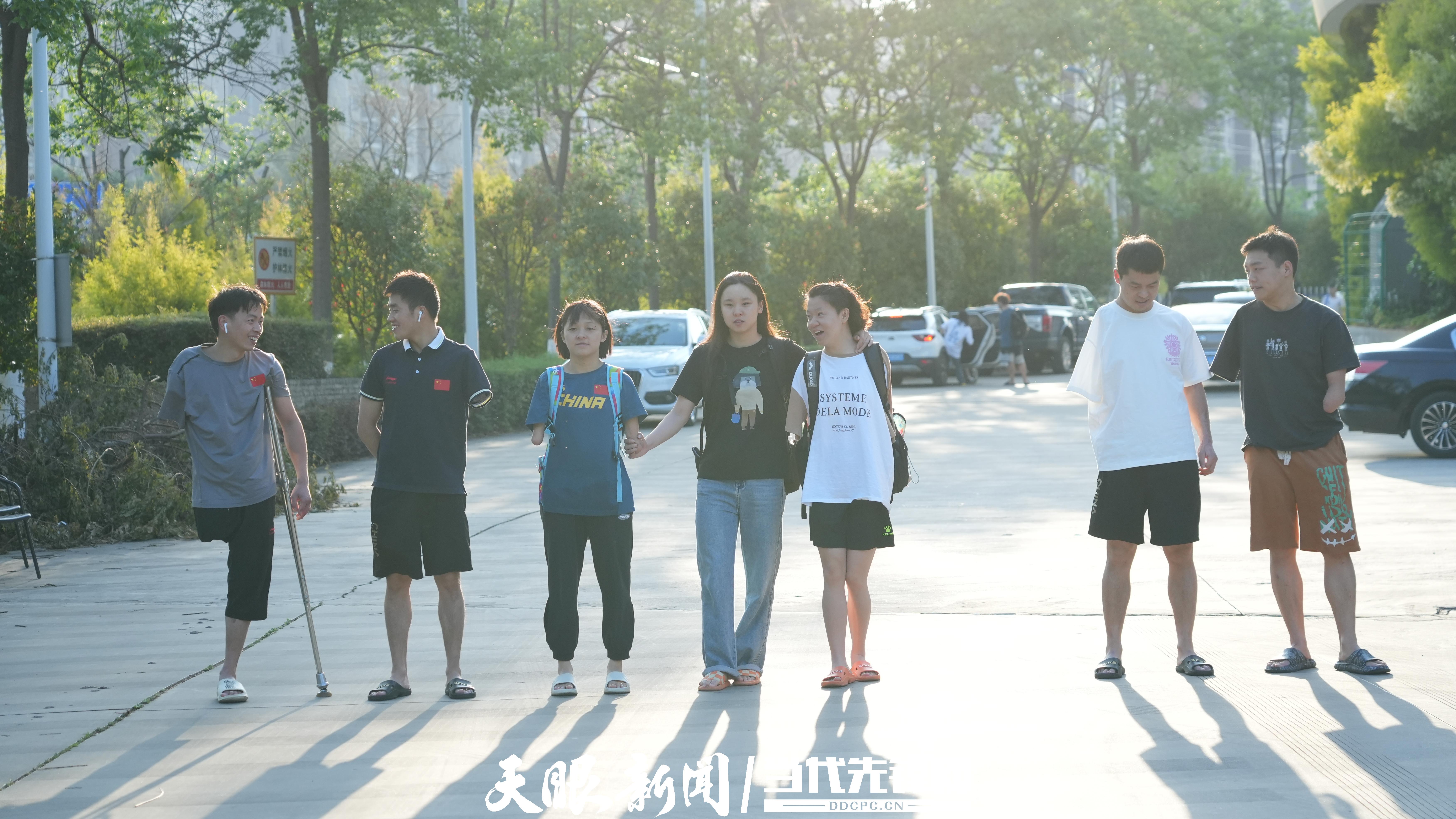 从左到右依次为中国残疾人游泳队贵州籍运动员:杨光龙、伍洪良、刘道敏、蔡丽雯、何聖羔、罗锦彪、杨洪。图为他们结束训练准备回宿舍休息。贵州日报天眼新闻记者 陈祖嘉 摄