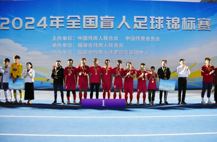 2024年全国盲人足球锦标赛组织委员会执行主任、福建省残联党组书记、理事长宿利南为获得冠军的云南盲人足球男队、女队颁奖,并宣布闭幕。在闭幕式上,16支代表队、64名运动员获“体育道德风尚奖”,5名赛事志愿者被评为“优秀志愿者”,6名赛事裁判员被评为“优秀裁判员”。