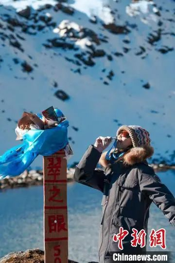 图为2025年1月,胡月用一条腿爬上人生第一座雪山