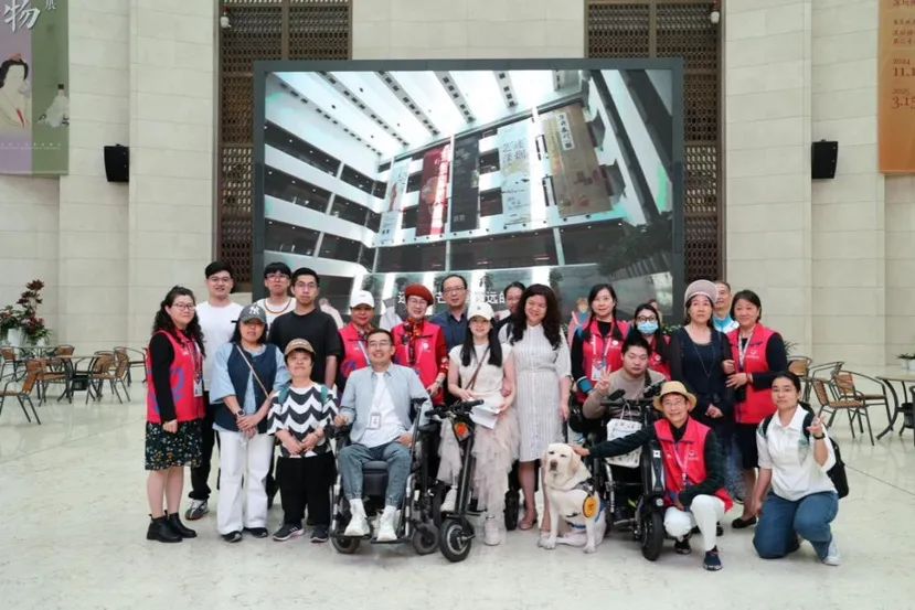 参与者们首站抵达关山月美术馆。视力残疾人黄女士通过讲解员语音讲解“观赏”展览作品,肢体残疾人则自如地穿梭于各个场馆间。随后,漫游队伍依次探访深圳音乐厅、图书馆等文化地标,最后在深圳博物馆前合影留念,无障碍设施与建筑流线型外观相映成趣。
