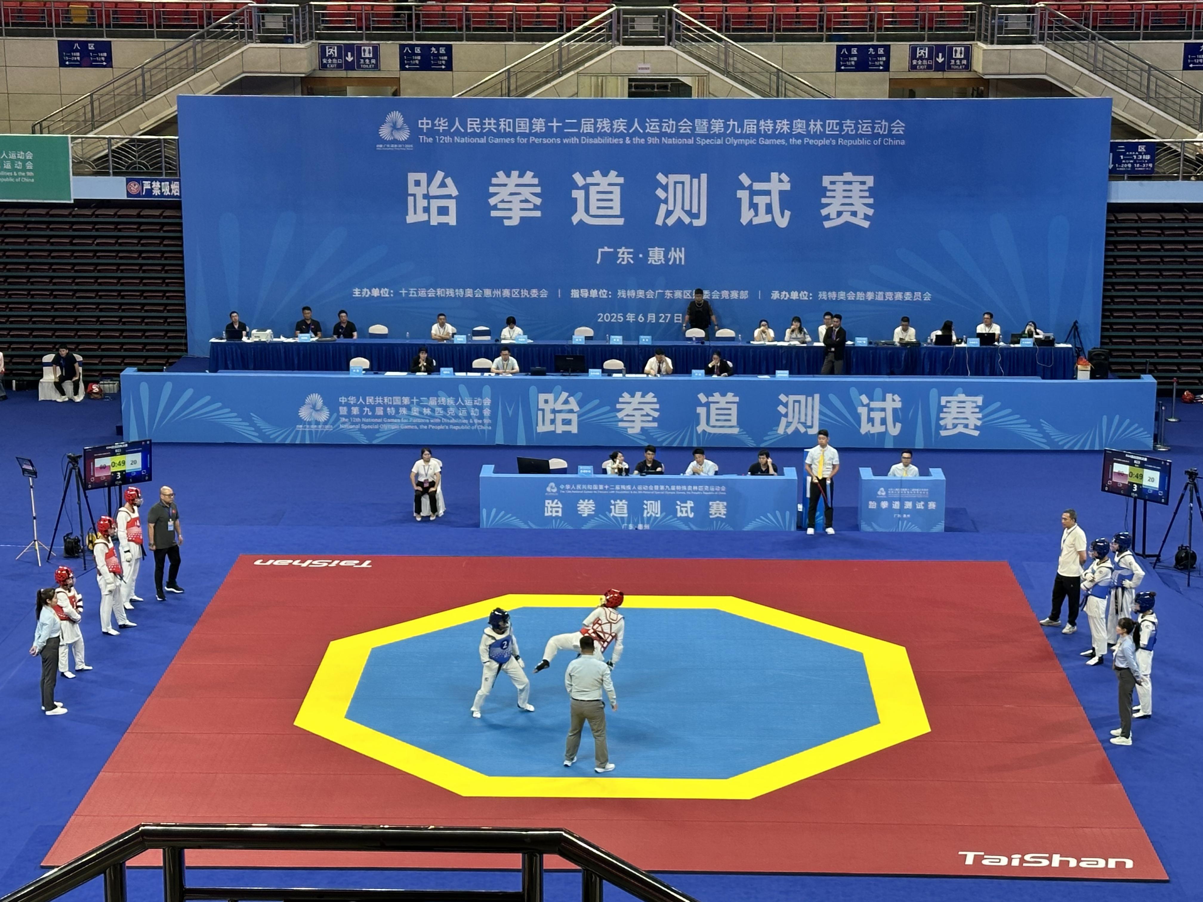 6月27日,全国第十二届残疾人运动会暨第九届特殊奥林匹克运动会跆拳道测试赛在惠州体育馆顺利完赛。作为残特奥会正赛前的关键演练,本次赛事检验了竞赛组织、场地设施、后勤保障等环节,为9月8日—14日举行的残特奥会跆拳道比赛奠定基础。