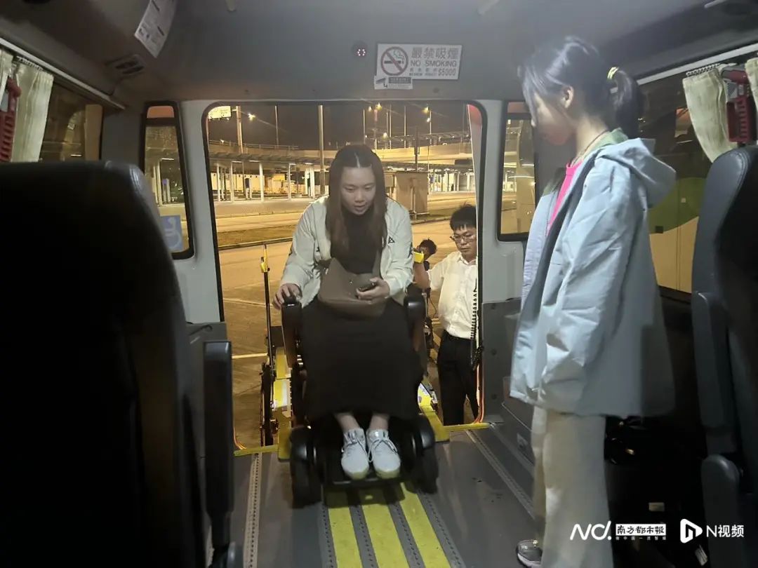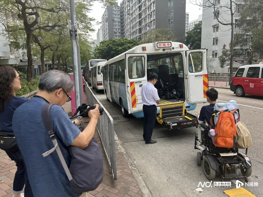 据介绍,福祉车是专门为肢体不便的人量身定制的车辆,其运营服务在香港也常被称为“复康巴士”。活动当天,福祉车按预约路线逐一上门接载游客,车辆配备了升降平台、轮椅轨道等设施,车内空间宽敞,在同行人员的协助下,残障游客无需离开轮椅,即可便捷地上下车,获得“点对点”的无障碍出行体验。