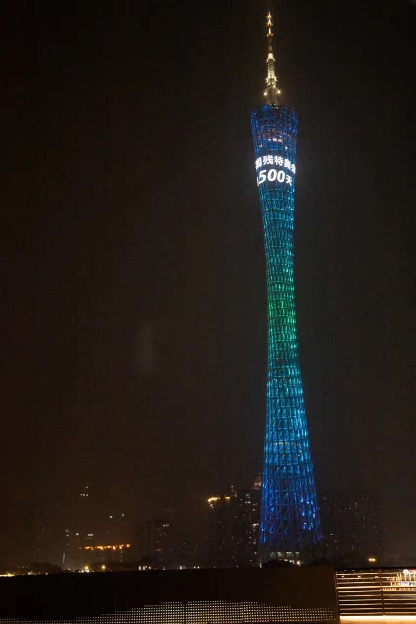7月26日是2025年全国残特奥会倒计时开幕500天。夜幕降临、华灯初上的广州夜空,被珠江两岸的灯火点亮,如同一条璀璨的银河流淌在城市的心脏。晚上7:30,广州的地标建筑以一种特别的方式,迎接残特奥会的到来。