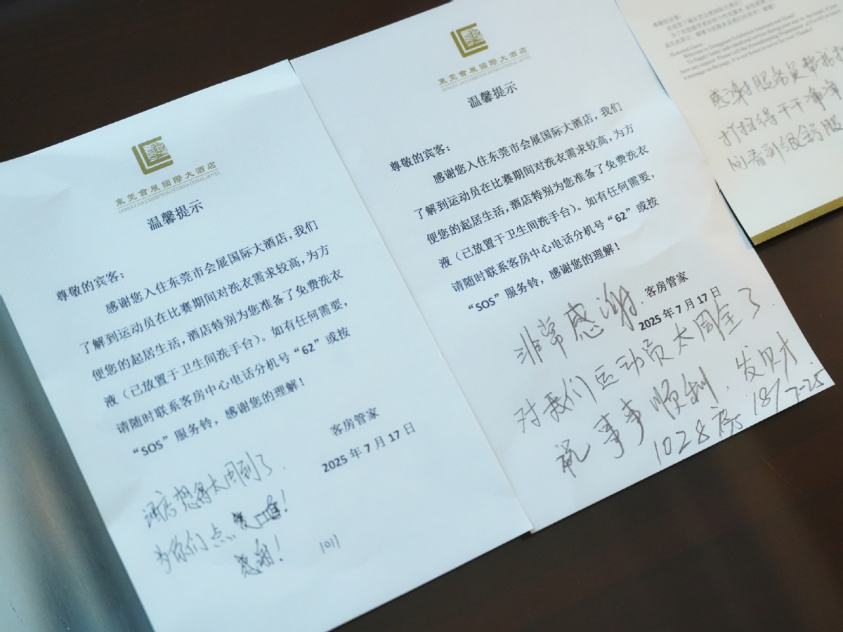 赛事尚未结束,各代表队住宿酒店的留言墙已被感谢便签填满。“闪光门铃太贴心了”“24小时手语服务让人安心”……这些手写文字背后,是东莞赛区构建的全方位保障体系。为了办好本次赛事,残特奥会东莞赛区成立了聋人篮球单项竞委会,设置10个处室,将“绿色、共享、开放、廉洁”的办赛理念和“简约、安全、精彩”的办赛要求,融入每个环节,为参赛者们铺就了顺畅、舒适、温暖的逐梦之旅。