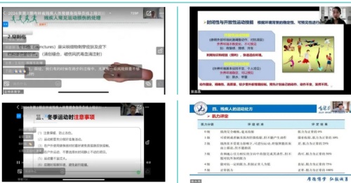 本次培训班为期2天,重点围绕中重度残疾人居家康复健身锻炼的方法;残疾人冬季体育健身项目及活动方法;残疾人冬季运动伤害防护与急救;科技介入对残疾人冬季运动技能习得与提升等相关方面的内容进行了讲解。课程内容丰富实用,教师讲解专业生动,学员积极参与课堂互动、获益良多。