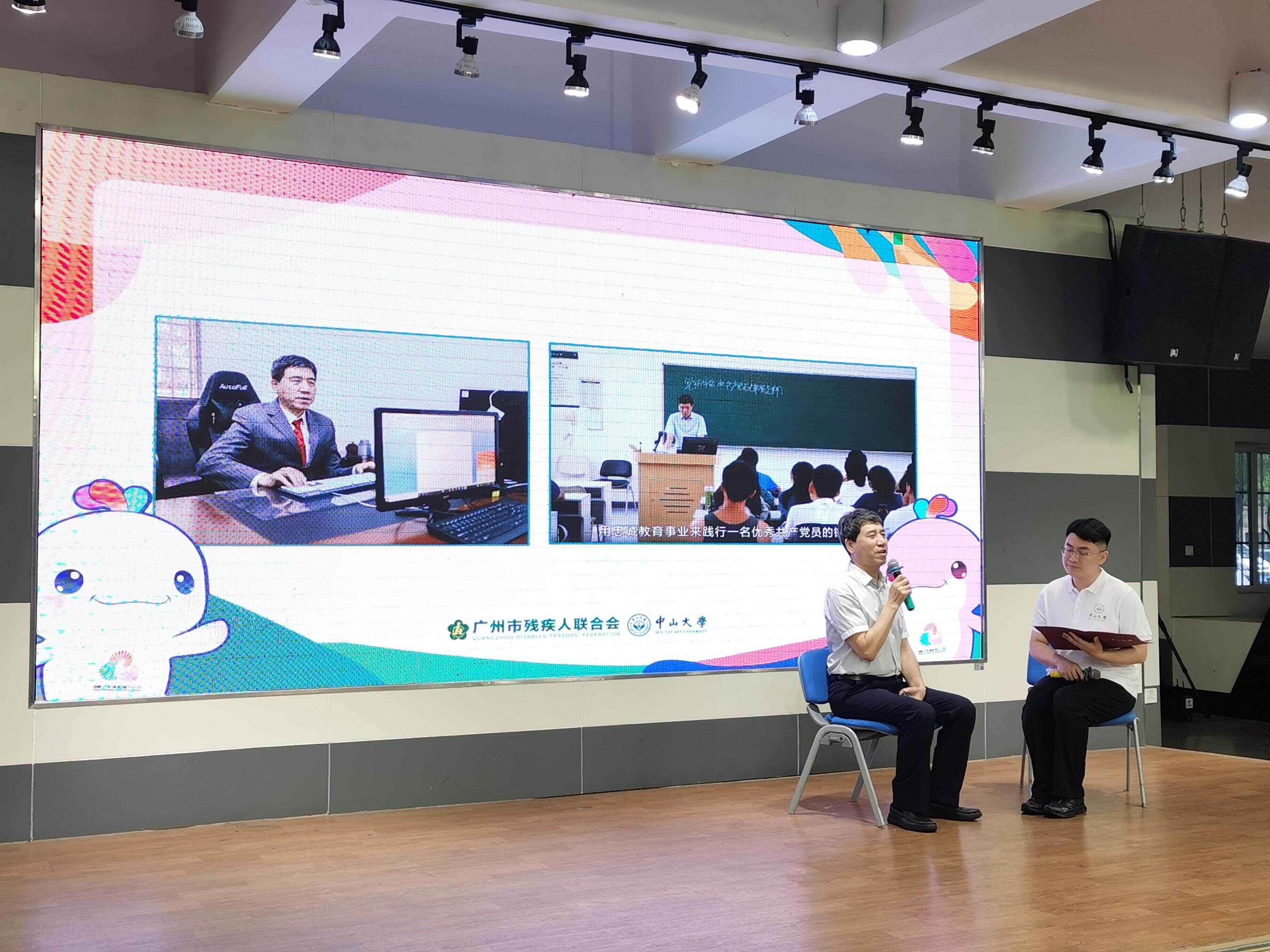 中山大学航空航天学院力学系教授富明慧作为首位分享嘉宾,深情回顾了担任2008年北京残奥会和2010年广州亚残会火炬手的难忘瞬间。在谈及克服教学中遇到困难时,他详细讲述了自己独特的备课 “三部曲” 以及与学生发明的 “磁铁定位法” 用于板书教学,还分享了他在教学科研一线的坚守与智慧。此外,他积极投身公益,作为省政协委员提交了多份提案致力于残疾人事业,发明的 “半方盲码汉字输入法” 惠及众多盲人。