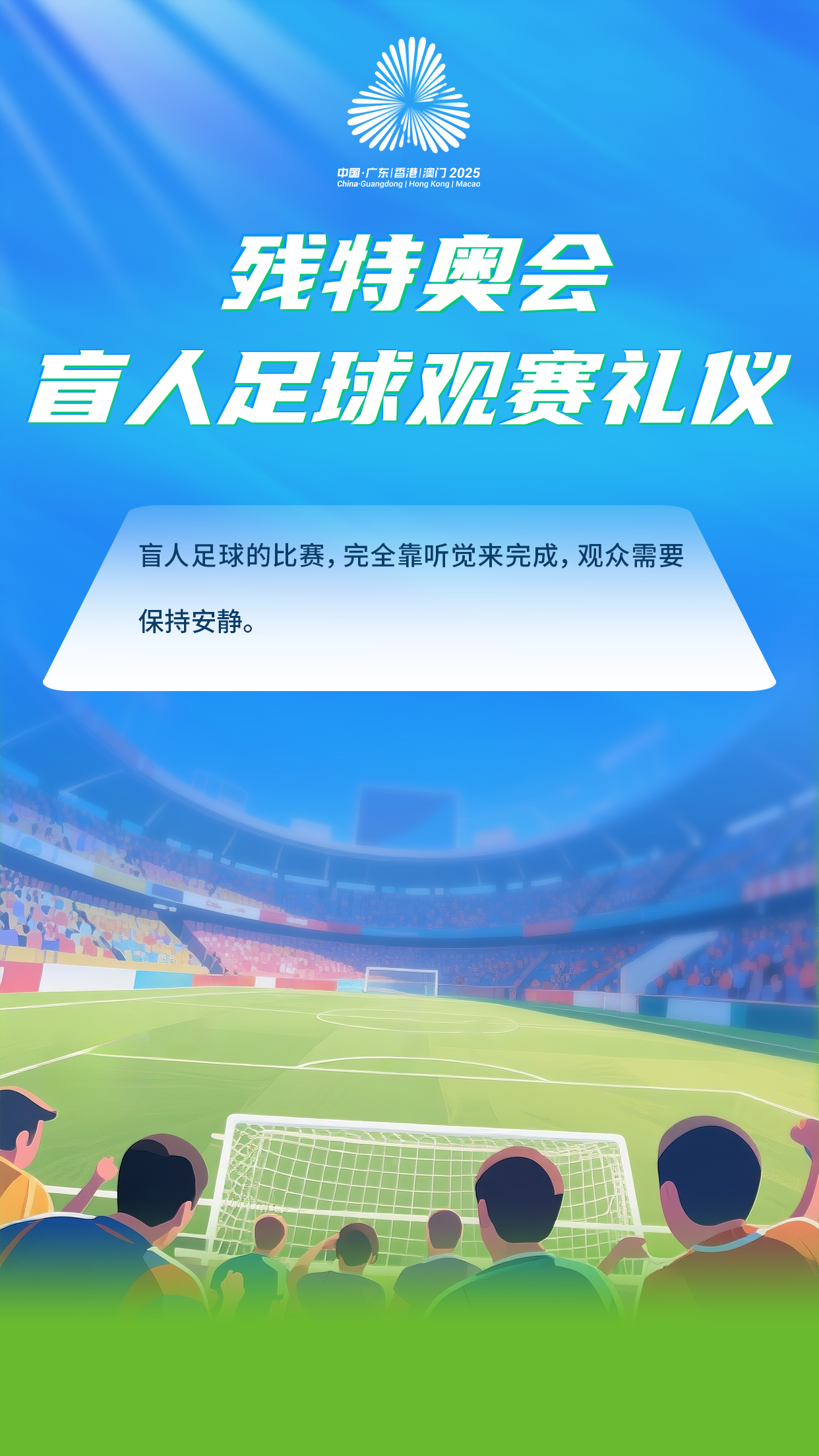 观赛礼仪:盲人足球的比赛,完全靠听觉来完成,观众需要保持安静。