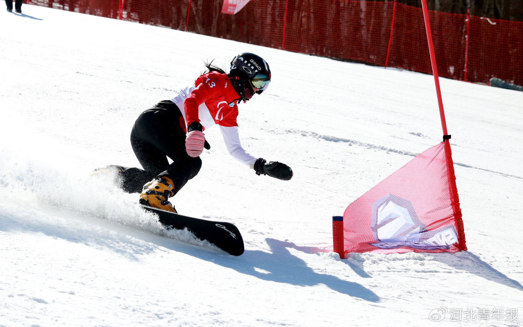 3月20日,河北运动员赵月月在单板滑雪平行回转听障女子组比赛中获得金牌。