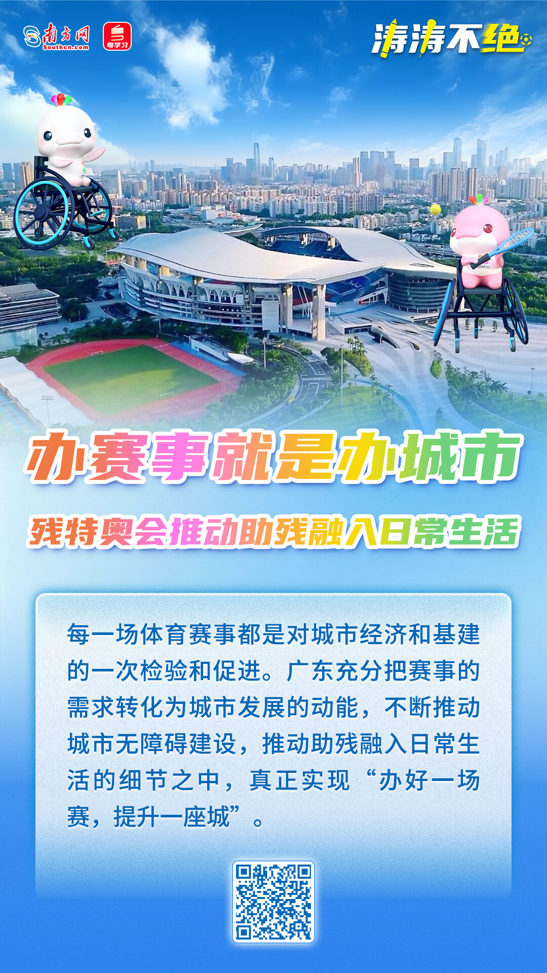 每一场体育赛事都是对城市经济和基建的一次检验和促进。把握残特奥会这一契机,广州首次提出全民全龄友好的“零障赛区”理念,改造升级场馆和城市无障碍环境,打造无障碍标杆城市。深圳去年完成152项城市品质提升工程,今年再推进80项重点项目,启动了赛事场馆周边277个重点点位的无障碍专项整治。珠海、佛山等承办城市也同步推进城市配套工程……广东充分把赛事的需求转化为城市发展的动能,不断推动城市无障碍建设,推动助残融入日常生活的细节之中,真正实现“办好一场赛,提升一座城”。