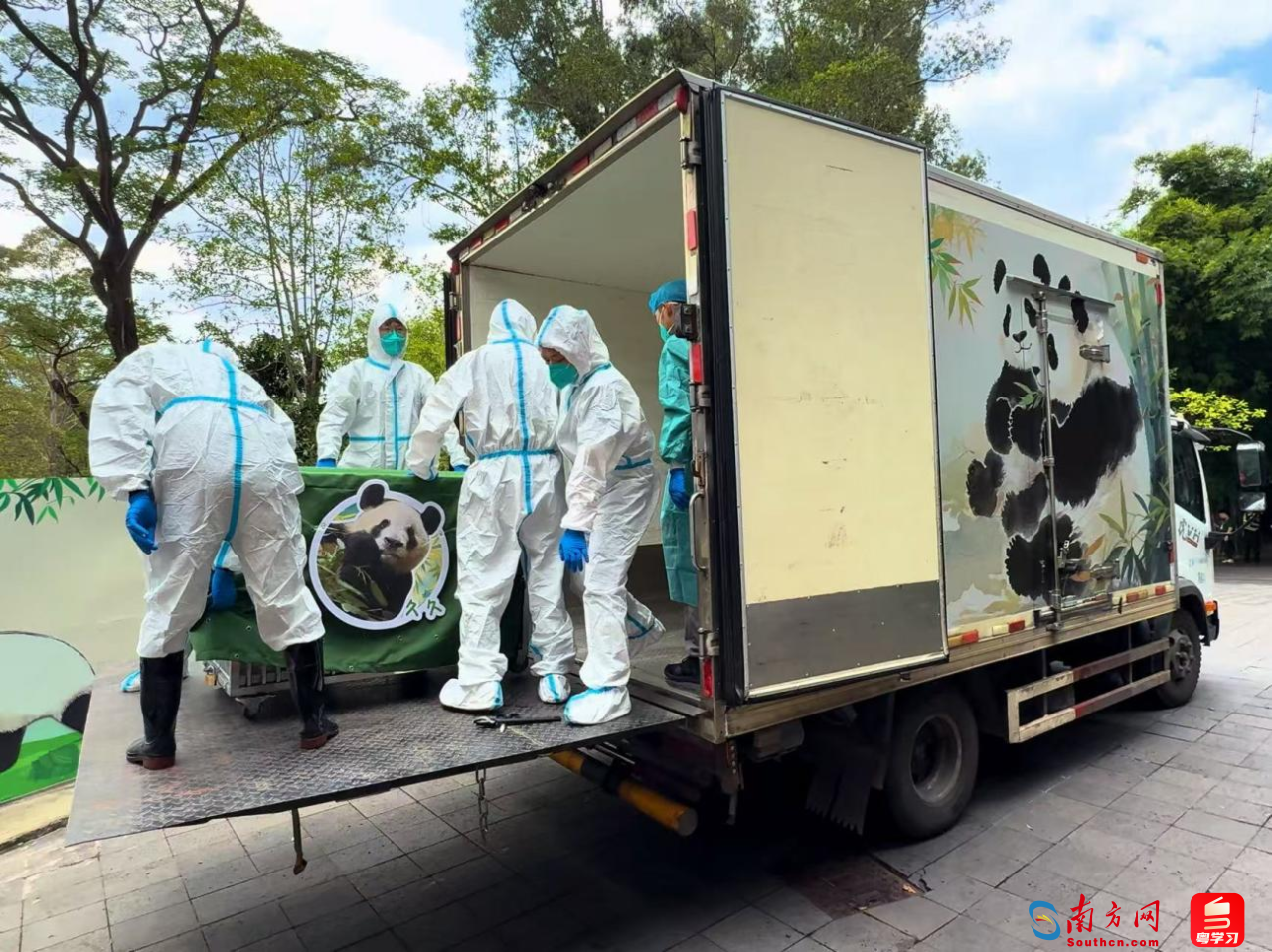 当天上午,两只大熊猫由成都大熊猫繁育研究基地和广州动物园的饲养、兽医团队一路陪伴,从成都来到了广州。从恒温专车到适配的舒适机型,装运团队与南方航空、白云机场、公安部门等多方密切协作,保障了转运过程安全、高效。中午时分,运输车辆平稳驶达广州动物园新大熊猫馆,“久久”“友友”正式入住新家。