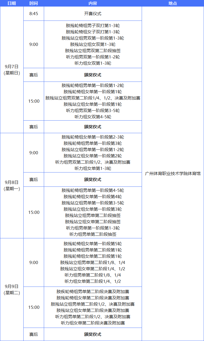 残特奥会乒乓球(大众组)比赛活动日程安排