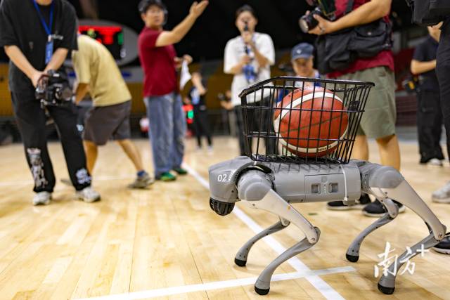本次测试赛用机器狗传递比赛用球至裁判手中开球。 南方+ 梁钜聪 拍摄