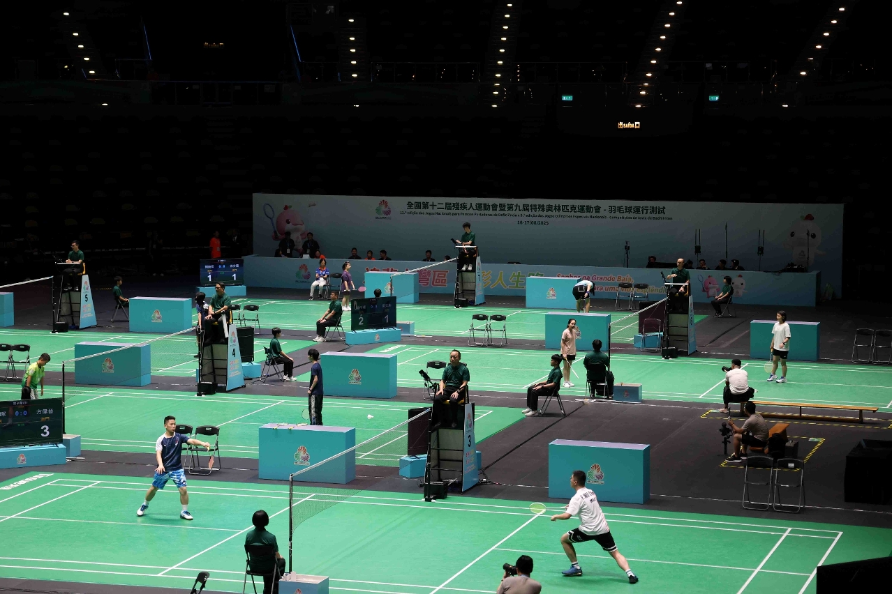 全国第十二届残疾人运动会暨第九届特殊奥林匹克运动会羽毛球项目运行测试17日在澳门东亚运动会体育馆结束。