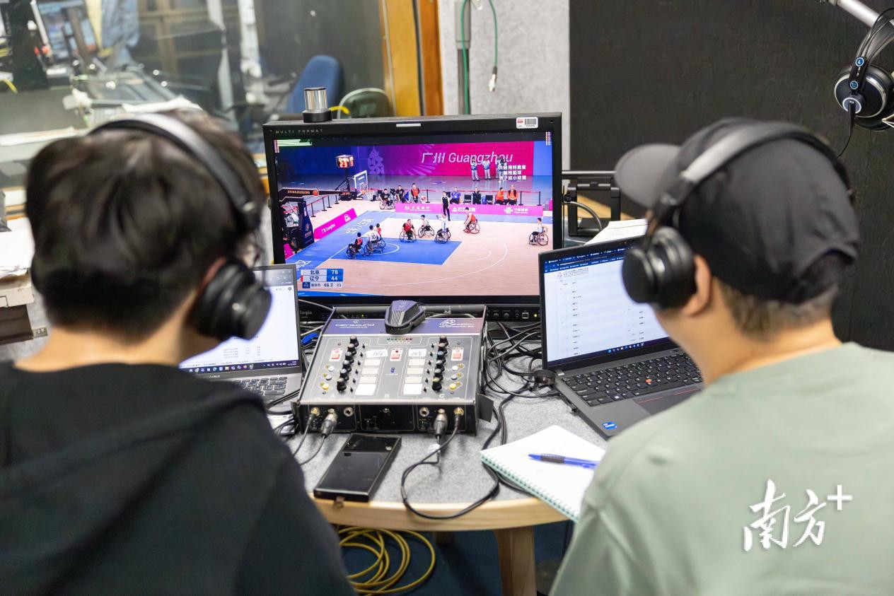 李乐希(右)与何家玮参与到十五运会和残特奥会直播赛事的口述影像工作中。