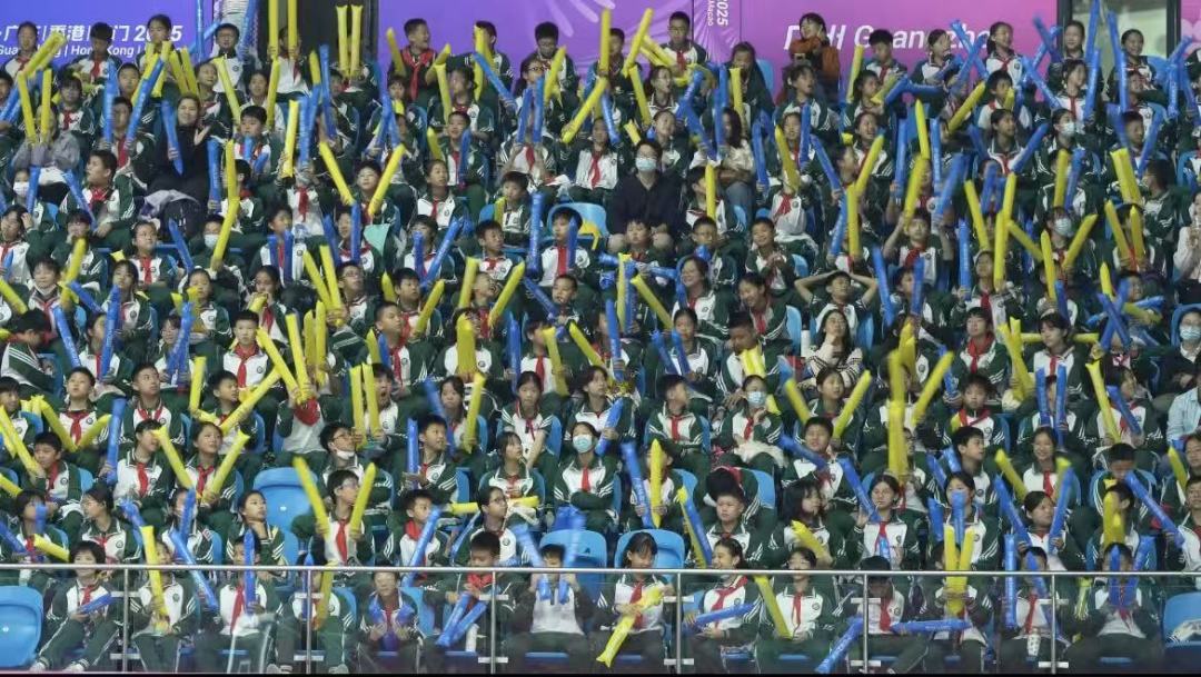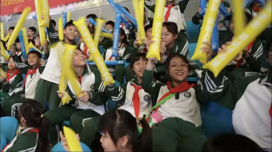 “加油”“加油”每每看到运动员们的精彩突破、成功防守、精准投篮,学生们热情的加油声、热烈的掌声此起彼伏,响彻赛场上空,为运动员注入了温暖力量。