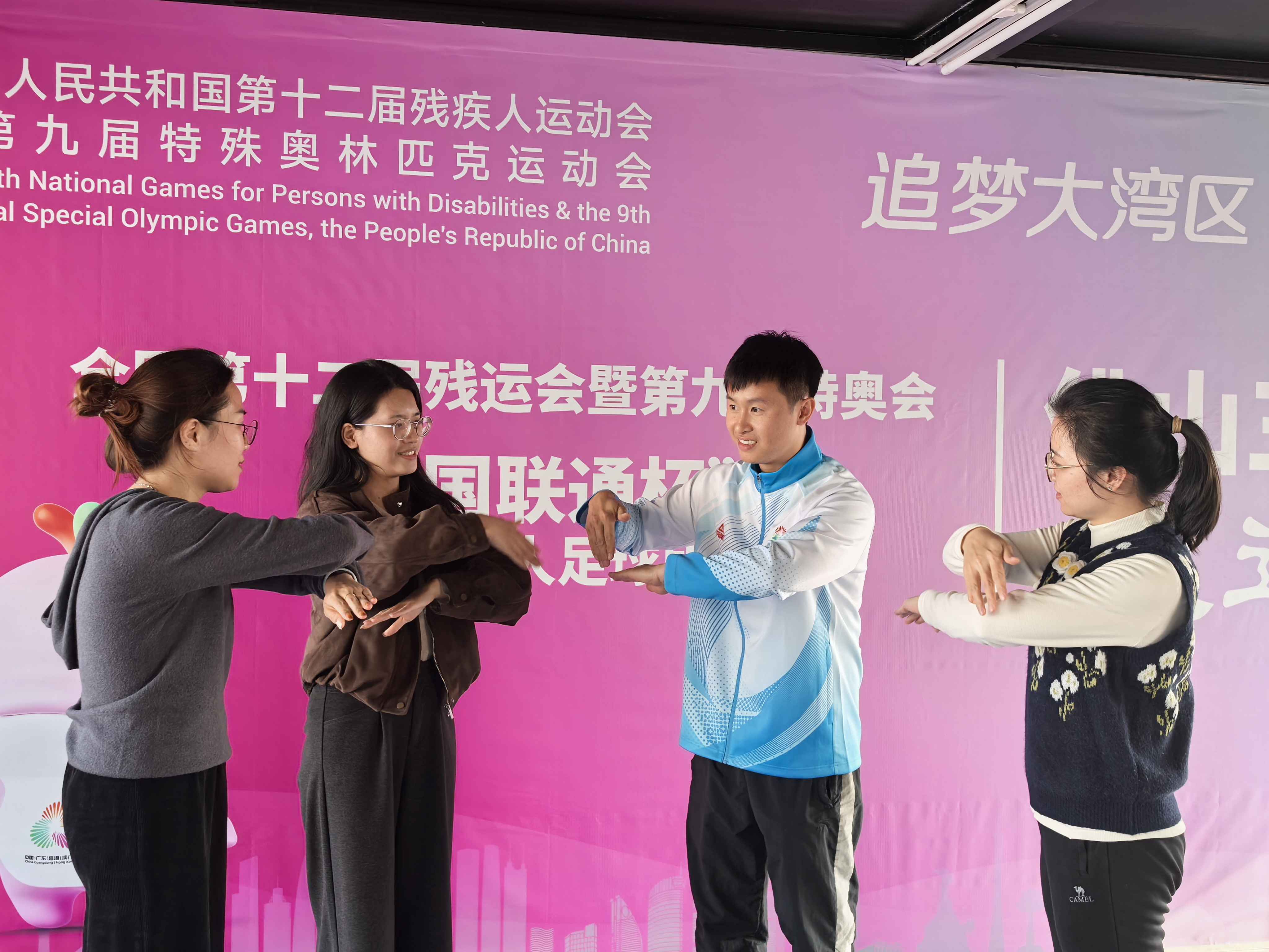 全国残特奥会五人制聋人足球竞委会竞赛处相关负责人介绍,为跨越沟通障碍,三水区配备了10名手语老师,24小时驻守场馆与酒店,提供专业手语翻译服务。同时,所有工作人员均接受了基础沟通培训,鼓励通过文字、手机打字等多元方式与运动员交流,确保服务“无障碍”、沟通“零距离”。