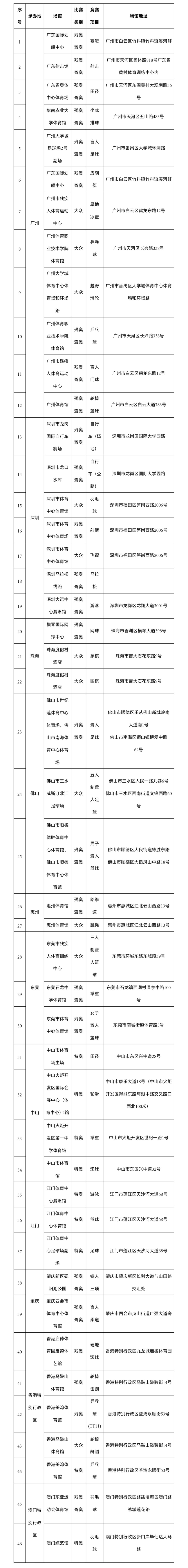 全国第十二届残疾人运动会暨第九届特殊奥林匹克运动会比赛场馆分布