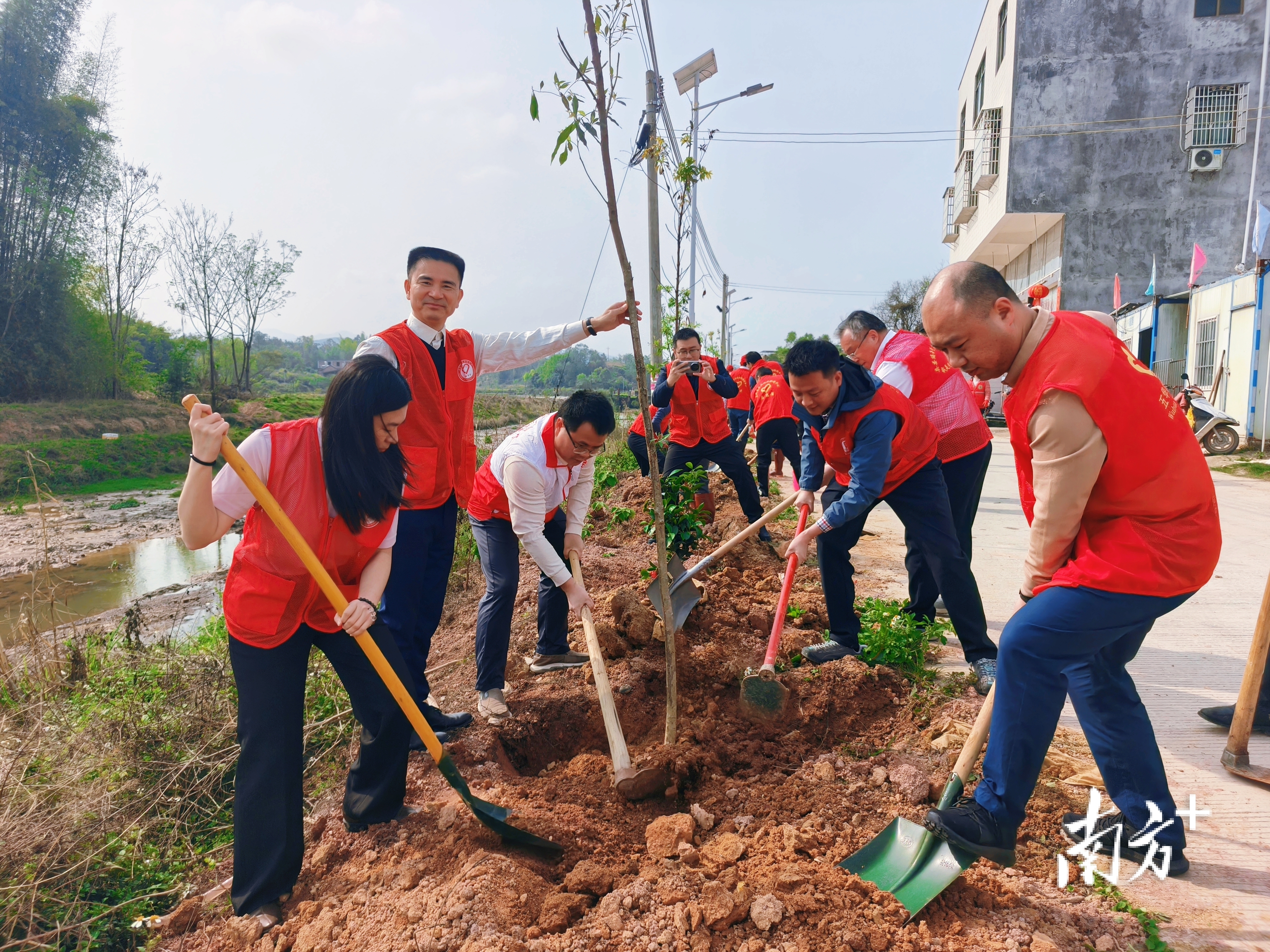 活动现场,返乡青年企业家与志愿者分工协作、挥锹植绿,种下600株四季茶花、闽楠、桢楠苗木。新苗整齐扎根化裕村1.5公里河道沿岸,既为琴江两岸筑起生态防护、景观提升、乡情承载兼具的绿色屏障,也为春日乡村再添青绿生机。