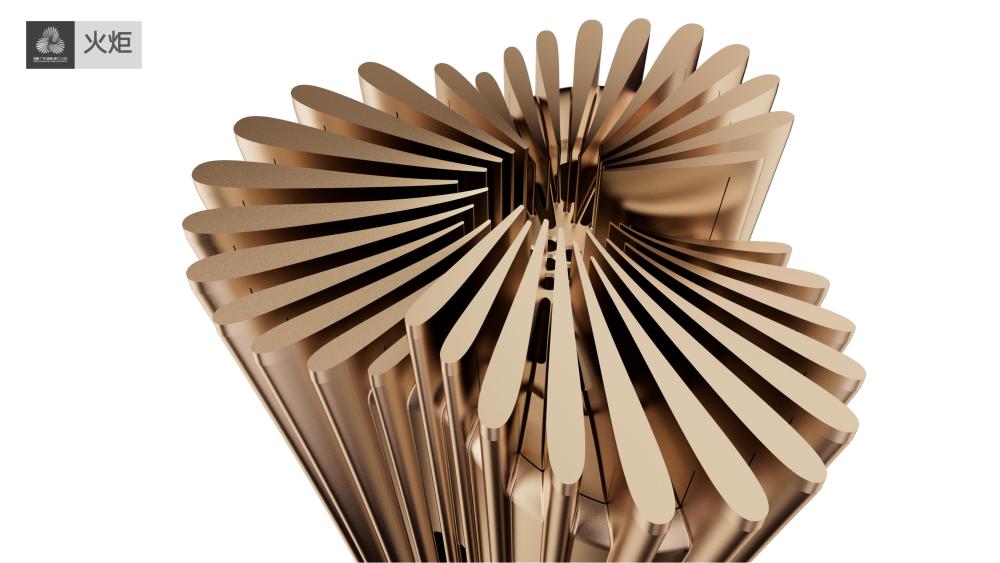 外观取平面会徽纵向拉伸,并作旋转扭变