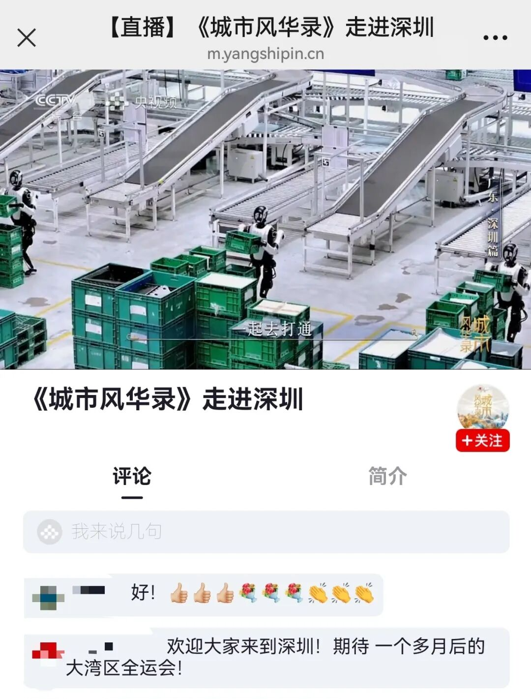 节目直播过程中,评论区被网友的热情“刷屏”,有人直呼“科技腾飞时代”,有人送上“优秀”的称赞,更有网友热情表示“欢迎大家来深圳!期待一个多月后的全运会!”