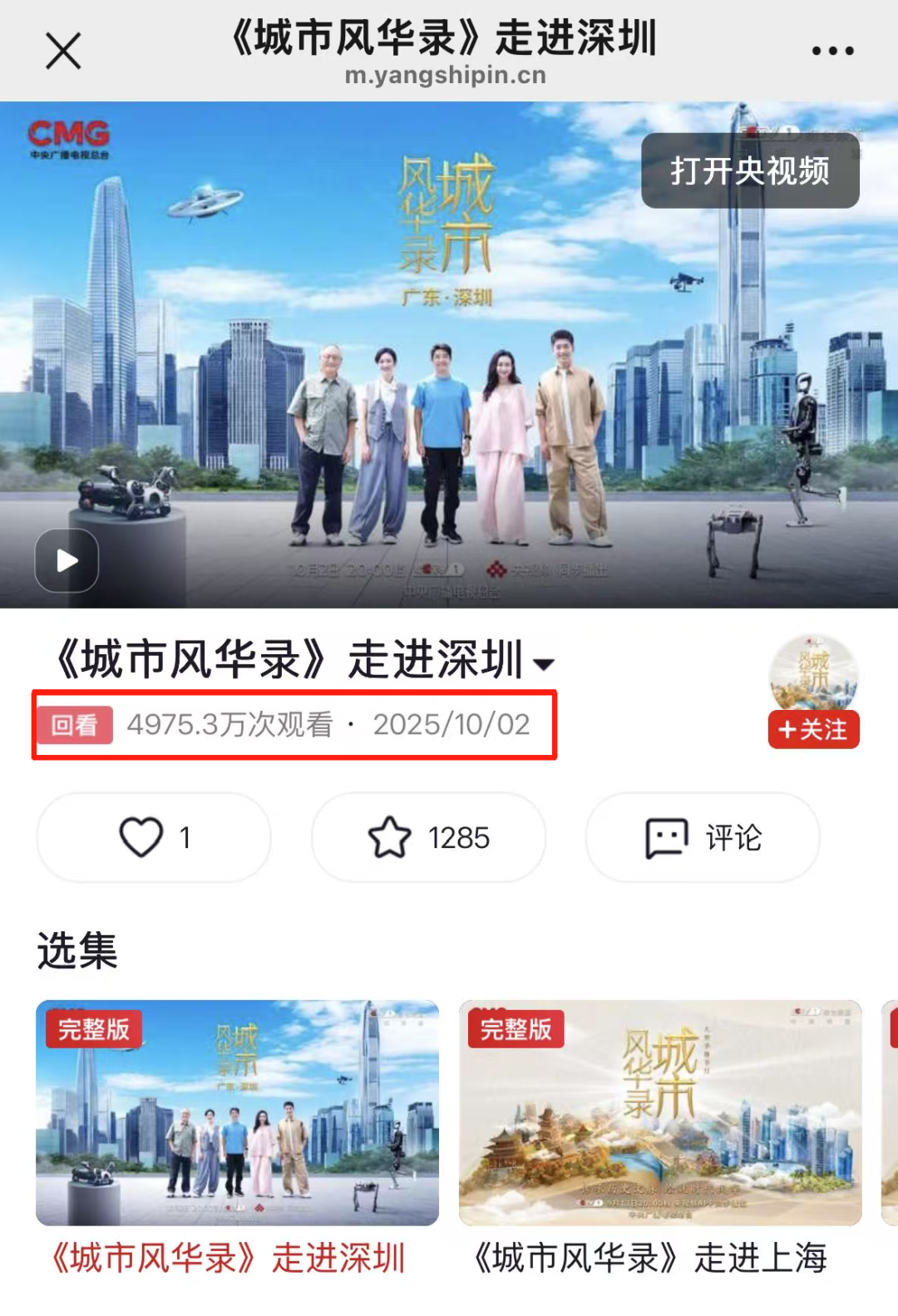 10月2日20时,中央广播电视总台大型季播节目《城市风华录》深圳篇在CCTV-1综合频道播出。由撒贝宁、王嘉宁、孟湛东、王鸥等组成的“风华团”不仅带领全国观众领略了深圳的科创活力,更首次揭开了这座城市为迎接十五运会和残特奥会打造的智能化保障体系。