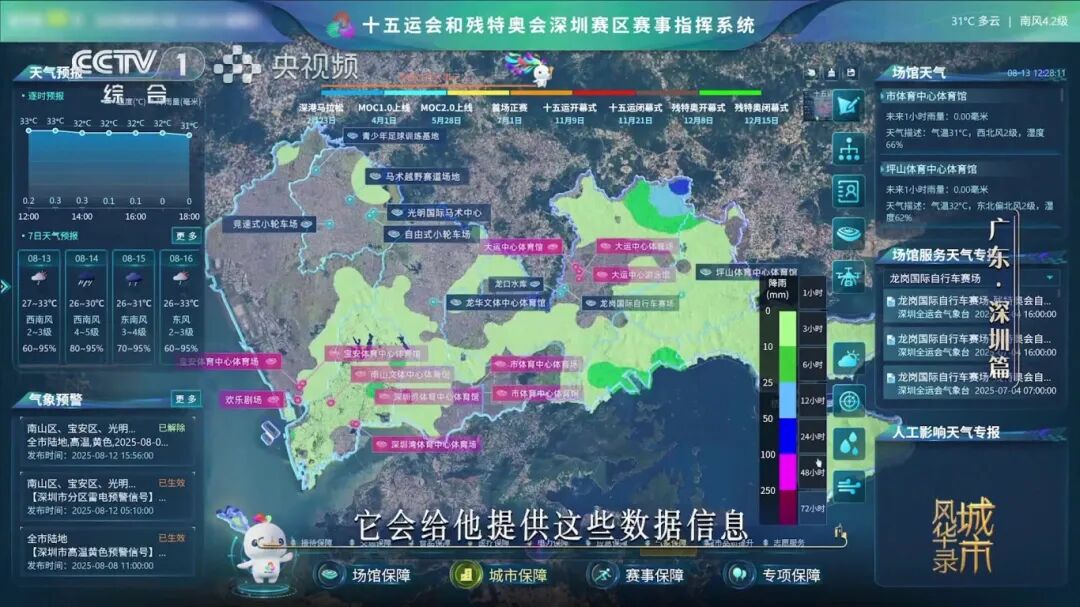 数字孪生城市平台实时调度、AI气象模型精准预测、交通保障系统秒级响应……深圳正用科技编织出一张密集而高效的十五运会和残特奥会保障网。