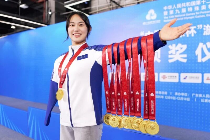 本届残特奥会游泳赛场的“夺金王”蒋裕燕,一举将9枚金牌收入囊中