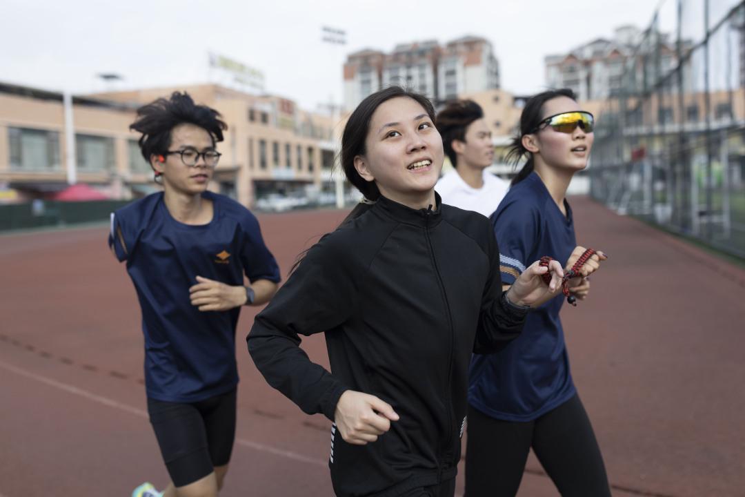 每天的训练还包括跑步和骑车。“一开始跑步,连一公里都好累人,跑完后连走路都疼,边练边想放弃。”话音刚落她又连忙笑说“就是反复有这个念头而已,脚下可不敢停”。