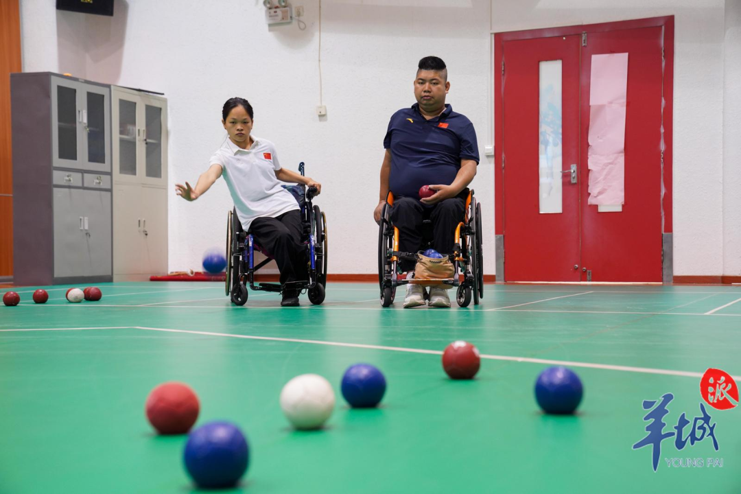 每天上午8点30分,广州市残疾人体育运动中心里,两人准时坐着轮椅从宿舍来到训练场训练。