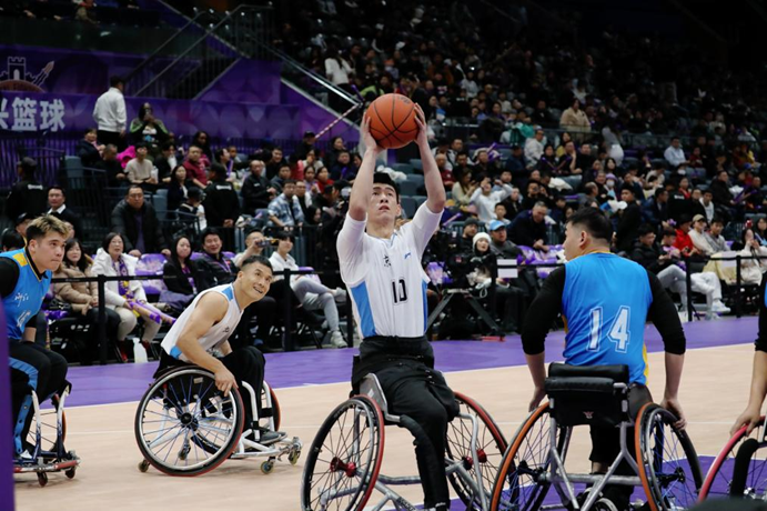 12月15日,2024-2025赛季CBA联赛常规赛第十八轮, “轮椅上的篮球梦”公益展示活动在国家体育馆上演。北京轮椅篮球男队与浙江轮椅篮球男队应邀为现场的球迷们带来了精彩的轮椅篮球对抗展示。