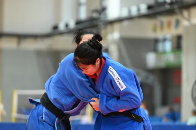 训练馆内涌动着一股张力。两位运动员身着深蓝色的柔道服,双手紧紧抓住对方的衣襟。突然,一方发动进攻,一个干净利落的投技——“啪!” 背部与柔道垫接触的响声清脆而扎实。两人迅速起身,双手再次攥紧对方的衣襟。汗水从他们的额角滑落,呼吸微促,可他们脸上始终带着平静和专注。