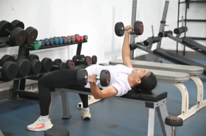 健身房内,空气仿佛因专注而凝固。梁燕芬的左手正紧紧握住哑铃,手臂与背部的肌肉绷出清晰的线条。每一次发力,她都微微蹙眉,用全身心去感受力量的凝聚与释放。在她身旁,领跑员田皓宇以细微的力道引导着:“肩胛下沉,核心收紧,呼气向上……”他们的配合默契无间。