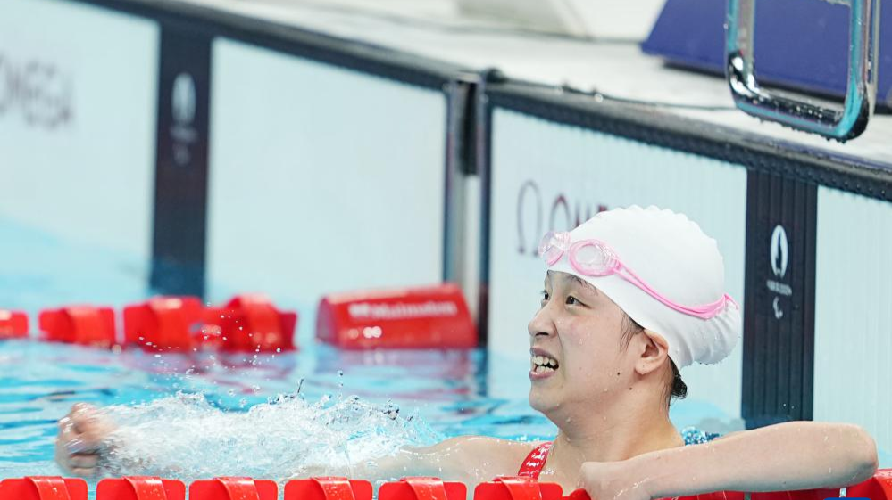 8月29日,中国选手蒋裕燕在比赛中。新华社记者张豪夫摄 当日,在巴黎残奥会女子50米自由泳S6……>>