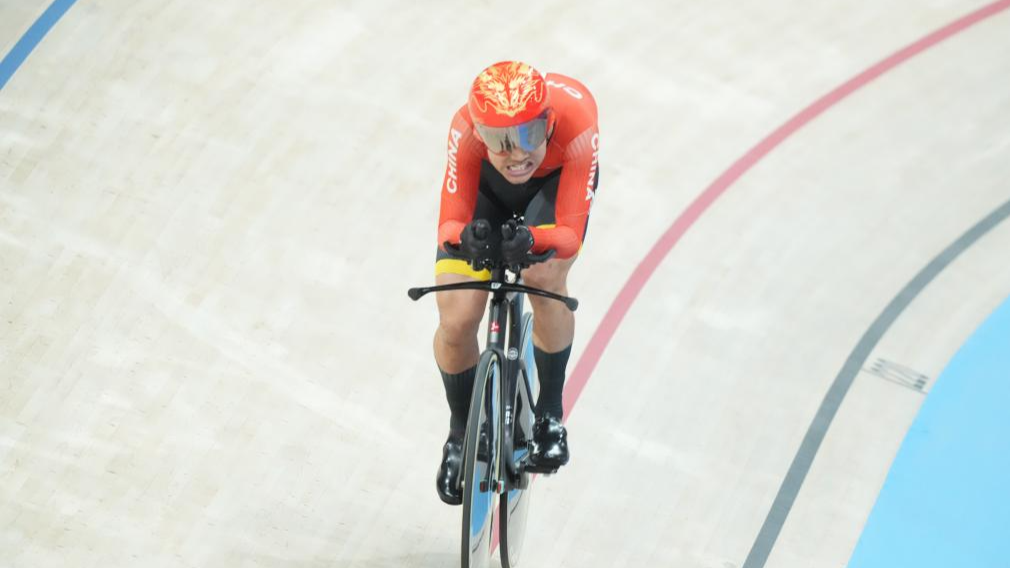 8月29日,李樟煜在比赛中。 当日,在巴黎残奥会场地自行车男子C1级3000米个人追逐赛中,李……>>