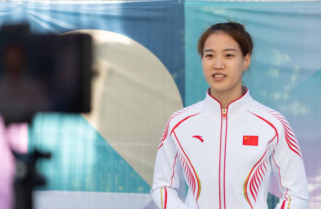 8月27日,中国女子轮椅击剑运动员辜海燕在法国巴黎接受采访。新华社记者 张豪夫 摄