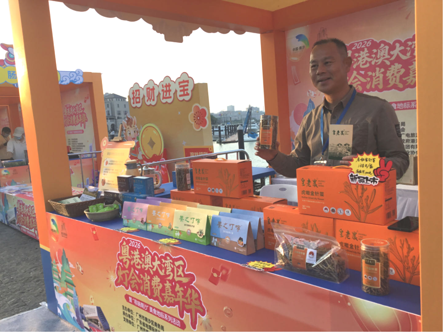 特色展位相继排开,化橘红、新会陈皮、英德红茶、虎噉金针菜、新垦莲藕、阳山鸡等十余款广东地理标志产品,搭配港澳风味与南沙本土美食,形成“一摊一品一故事”的消费矩阵。