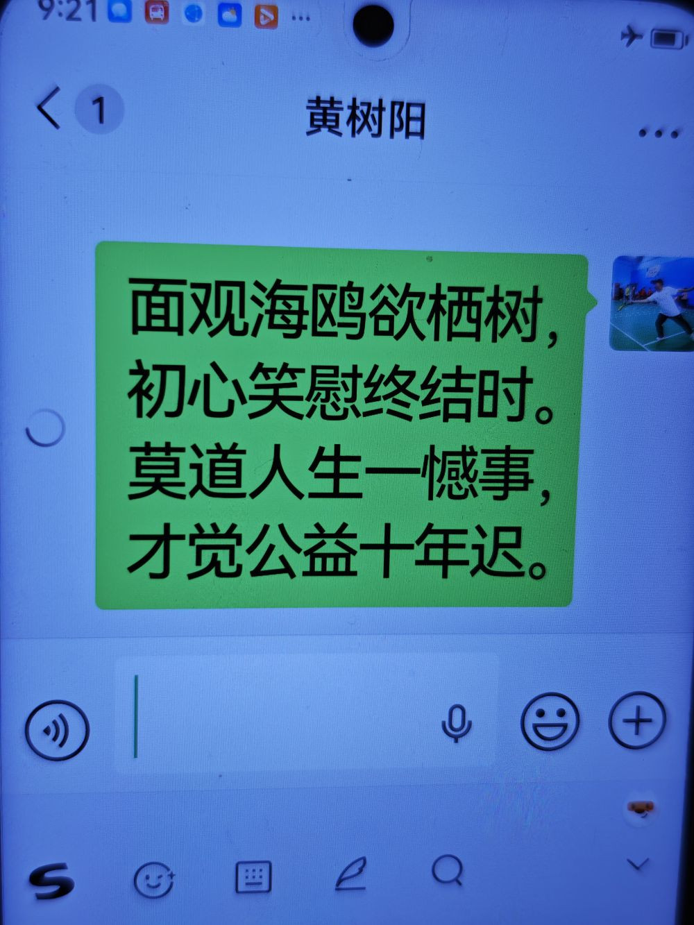 14日,澳门综艺馆的特奥羽毛球比赛全部结束,终于得闲的黄树阳踱步到澳门的海边。海风拂面,海鸥掠空,一股复杂的情绪涌上他的心头——“面观海鸥欲栖树,初心笑慰终结时。莫道人生一憾事,才觉公益十年迟。”